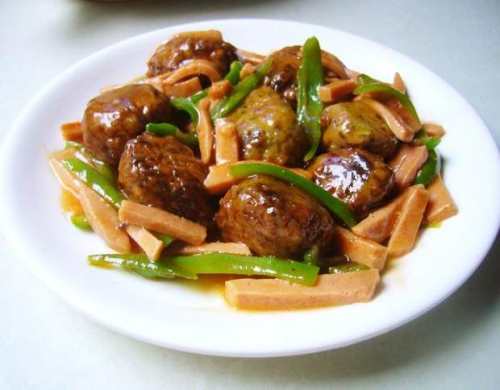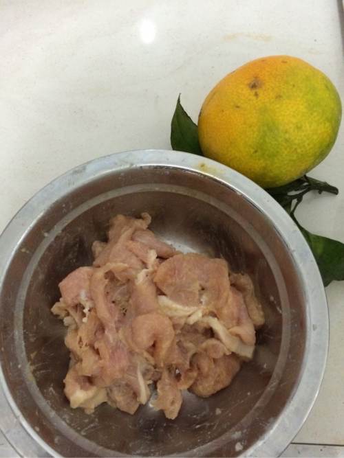 3瘦肉切片,用地瓜粉和一点酱油抓匀,备用。
