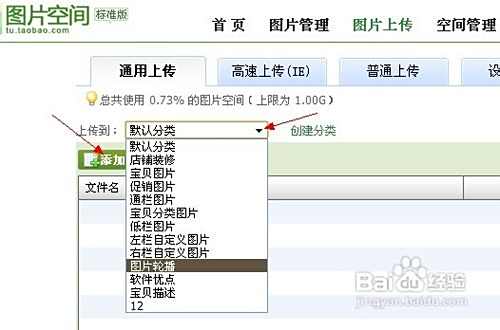 选择分类(要上传到哪个分类下,有助于查看。没有合适的,也可以点击创建分类),点击添加图片