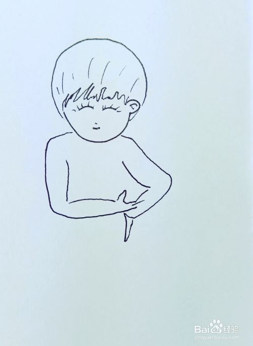 然后再用线条和曲线画出小女孩的身体部分和胳膊部分。