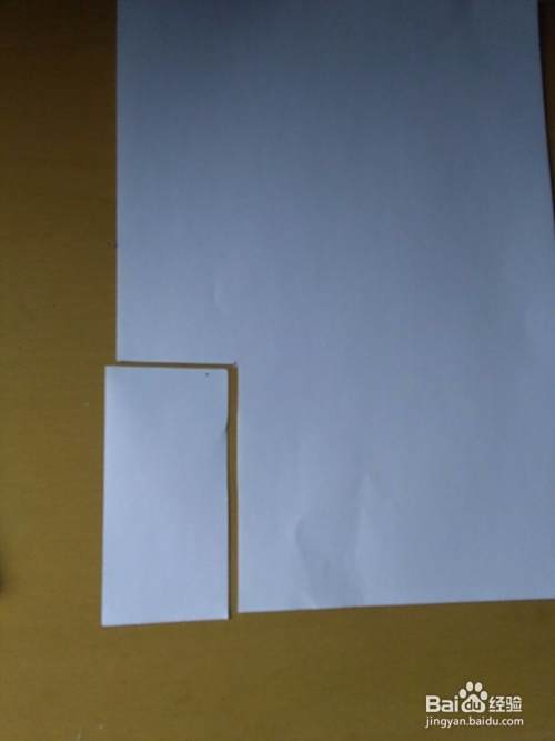先在纸的左下方剪下一个长方形,如图