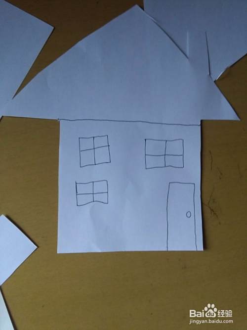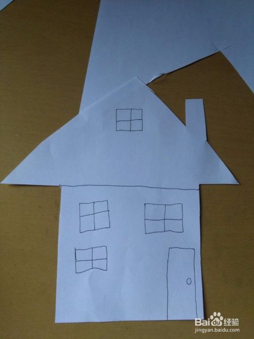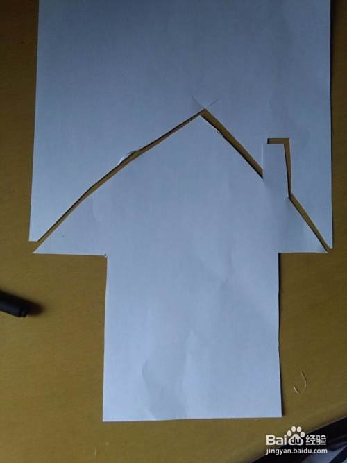 顺着右边的边缘处剪出屋顶和烟囱