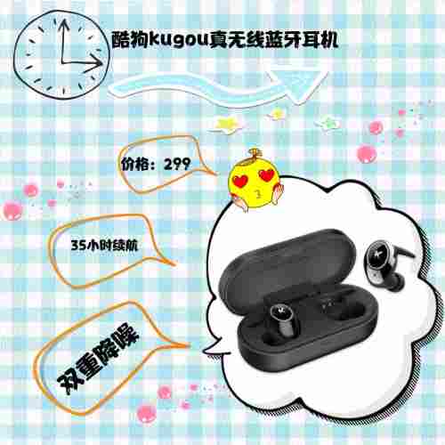 这款酷狗无线蓝牙耳机,35小时续航,双重降噪设计,音质效果非常的好。