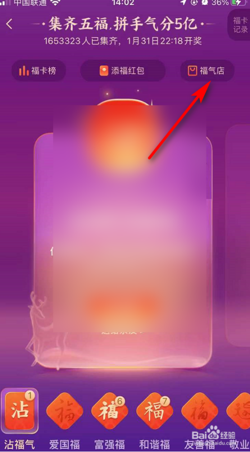 首先进入支付宝我的福卡页面点击右上的福气店。