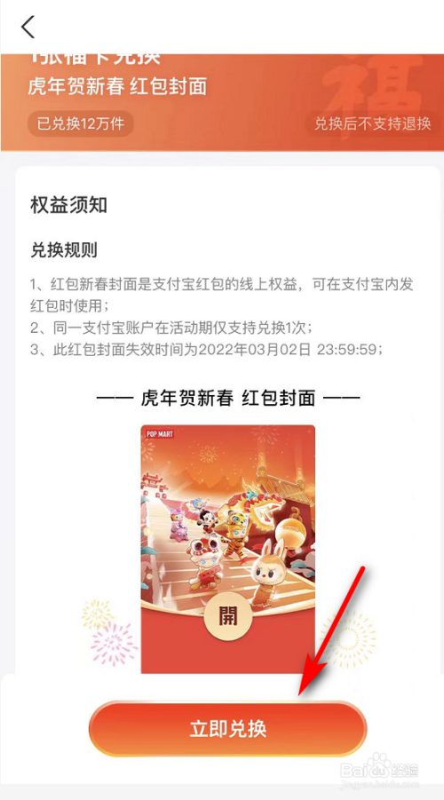 接着进入兑换页面点击,立即兑换。