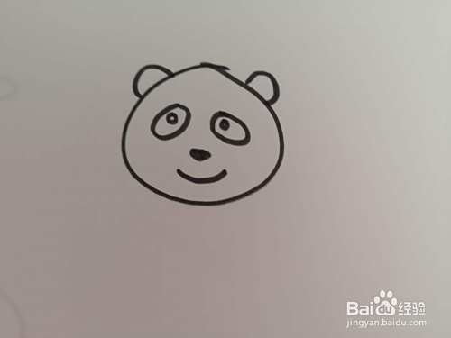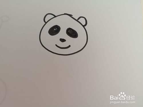 4.给小熊猫画上可爱的小鼻子、微笑的嘴巴。