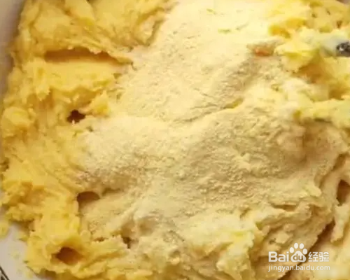 烫面后在分次加入250克的细玉米面随倒随搅拌。