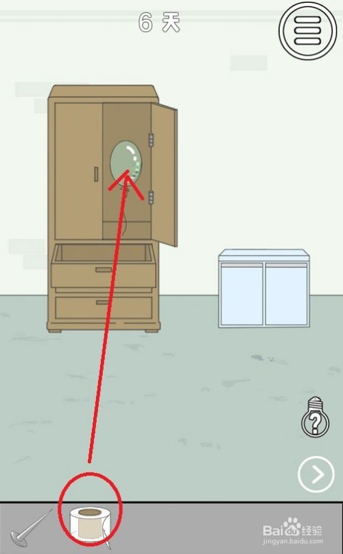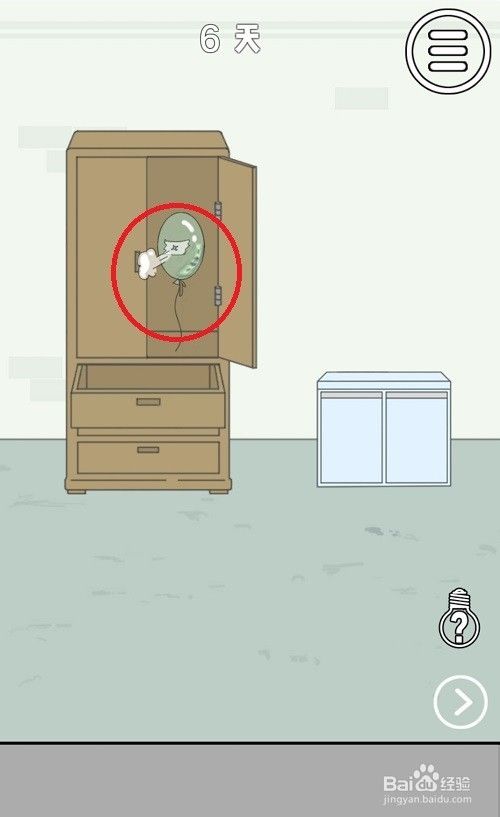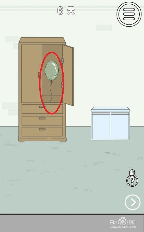 进入第六关后,首先点击衣柜右侧的那扇门,可以看到一个气球。