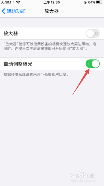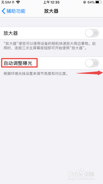 之后将自动调整曝光的开关向右滑动。