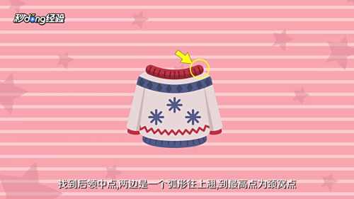2从后领窝点,找到后领中点,两边是一个弧形往上翘,到最高点为颈窝点,领子与衣服接缝处垂直向下,到衣服下摆处。