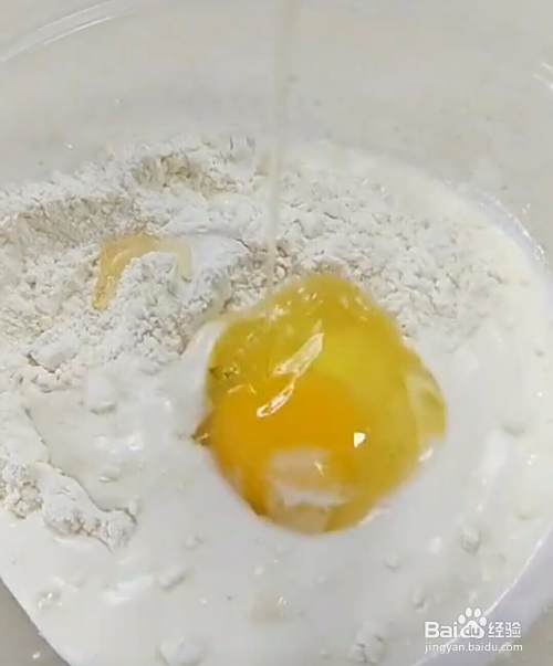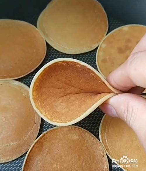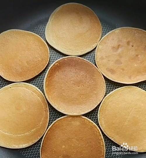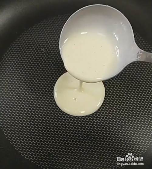 平底锅预热不用刷油用勺子一勺一勺的倒进去。。