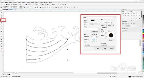 再点击贝塞尔工具在图形内部绘制多条曲线,选择曲线按f12将轮廓加粗,再按ctrl+shift+q键将轮廓转为对象,选中所有图形点击简化,删除不要的图形。