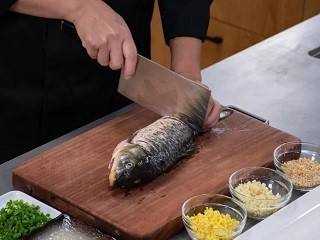 鲤鱼清洗干净,割花刀。