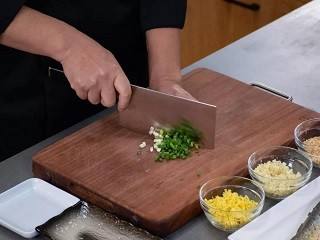 香葱、生姜和大蒜切碎。