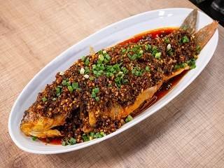 鲤鱼清洗干净,割花刀,抹上食盐和料酒,放入淀粉中,裹上淀粉,放入热油中,炸至金黄色,锅内倒入炸过鱼的油,加热,加入糍粑辣椒,炒匀,加入碎花生、生抽、生姜和大蒜,炒匀,淋在鲤鱼上,撒上香葱和花椒粉。