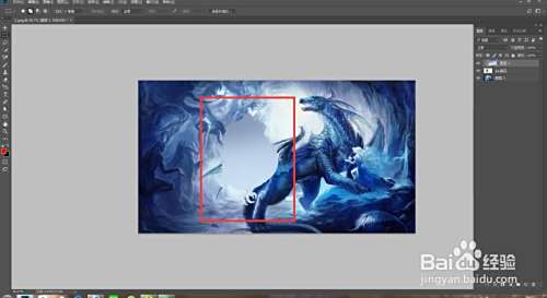 点击背景图层,在抠出的物体旁边用矩形选框工具框选一块背景,按ctrl+j键复制出来置于顶层,按ctrl+t放大铺满整个画面,点击确定。