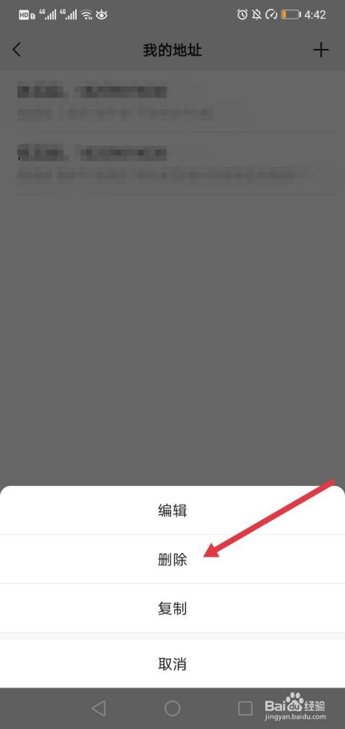 在地址列表页,长按想要删除的地址。