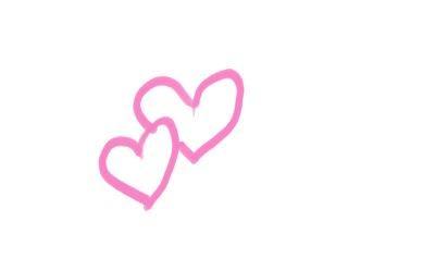用粉紫色画笔画一大一小两个心形。