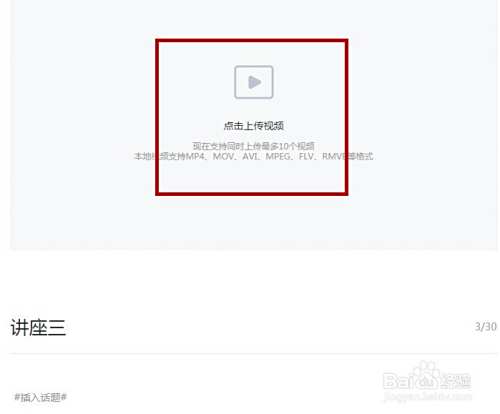 在菜单栏中选择【视频】,在中间选择【点击上传视频】,填写好视频的标题。