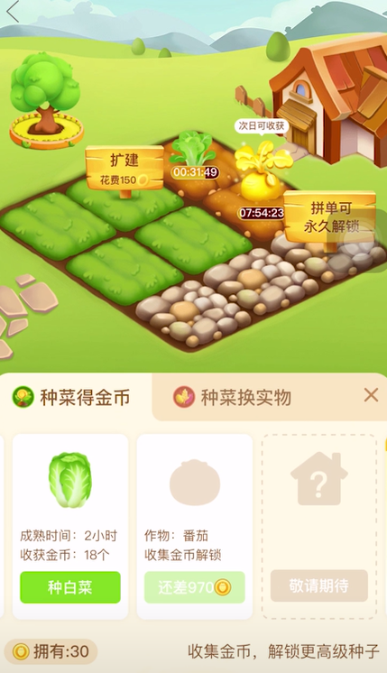 点击“播种”,选择种菜换实物。