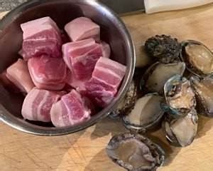 3、锅中放水,倒入适量料酒,大火烧开后,将切好花刀的鲍鱼汆烫30秒,捞出备用。