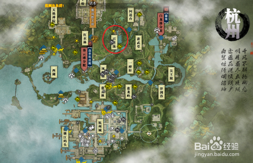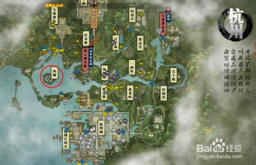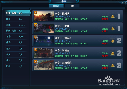 画卷:杭州城,创作地点:杭州城,只要角色位于杭州城当中,都可以进行书画的创作,可选择杭州城的四个城门进行传送。