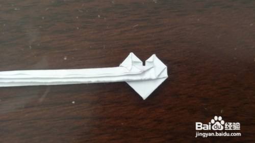 将小爱心另一边也折上三角形,如图所示,然后将上面的角折下来就好了
