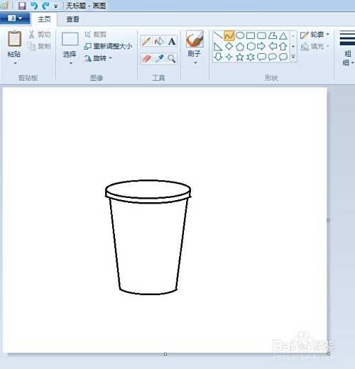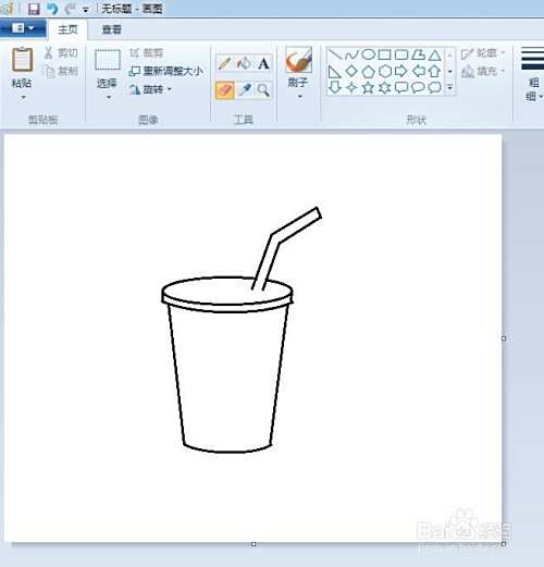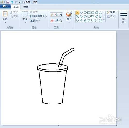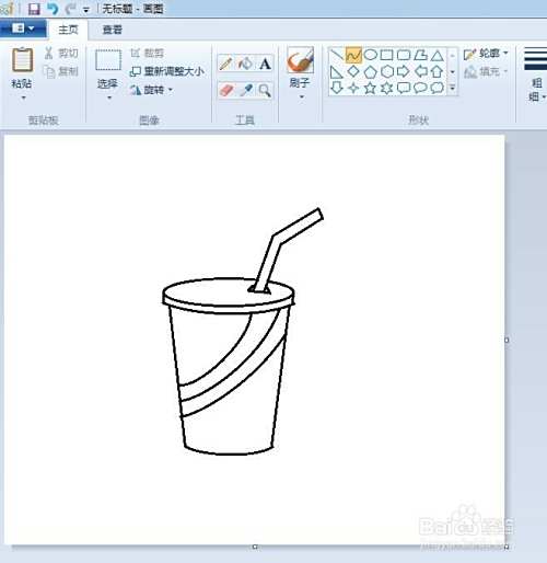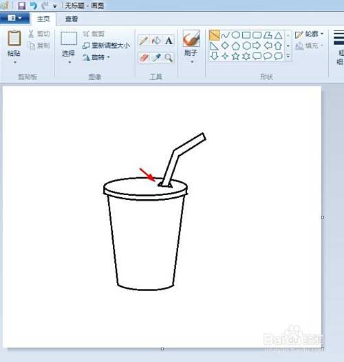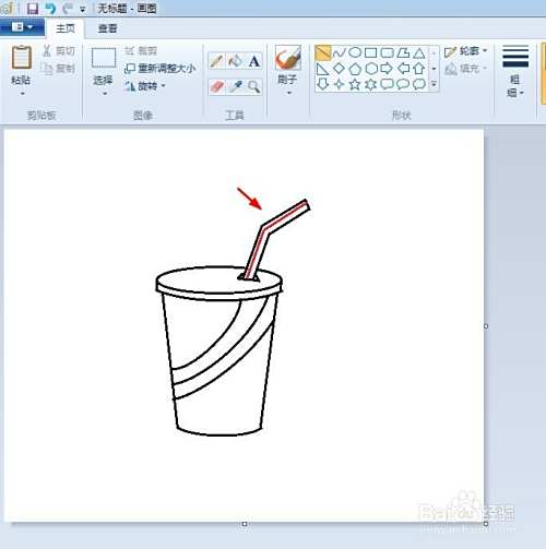 第三步:在画好的可乐杯上,画出一个折线形状的吸管,并将吸管与杯盖交叉的地方线条擦掉。
