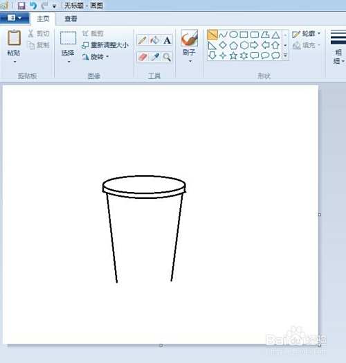 第二步:在可乐杯盖左右两侧,分别画出两条向内侧倾斜的直线,并用弧线将两条直线连接起来。