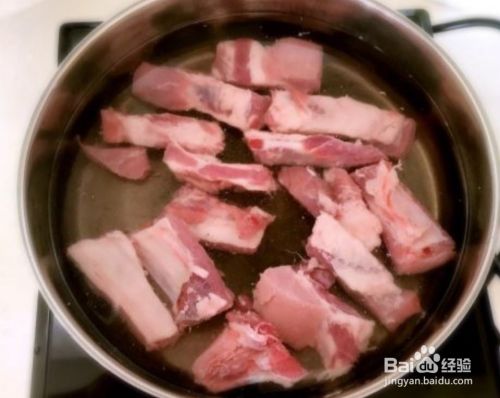 锅中加水,放入排骨,焯10分钟后用冷水冲洗排骨。