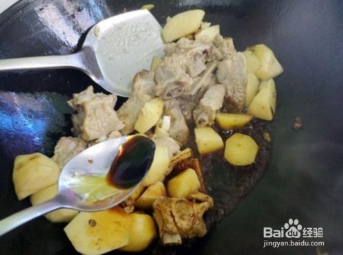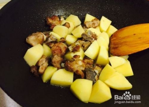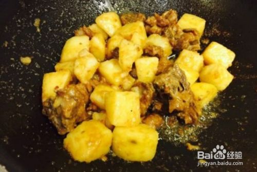 至排骨变为焦黄,放入土豆继续翻炒2分钟。