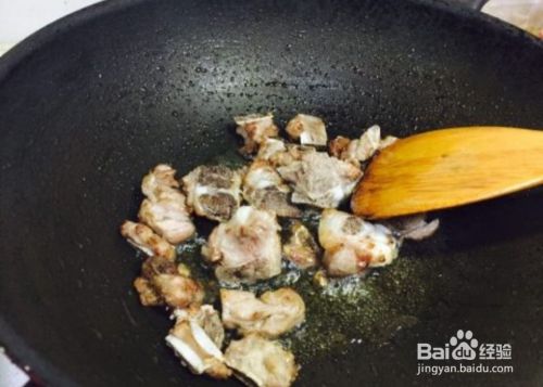 锅中热油,放入排骨翻炒。