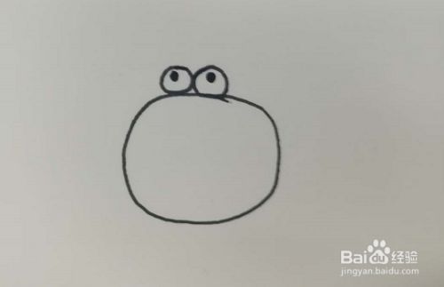 第二步,在刚刚画好的圆的上面,画上两个小圆圈,两个小圆圈紧挨在一起,具体可以参考下图。
