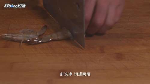 虾洗净,切成两段。