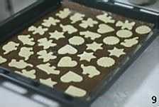 将刻好的饼干面团摆在烤盘上,每个面团留出一定空隙。刻完饼干剩下的边角料,可以重新揉成面团擀开再次使用。