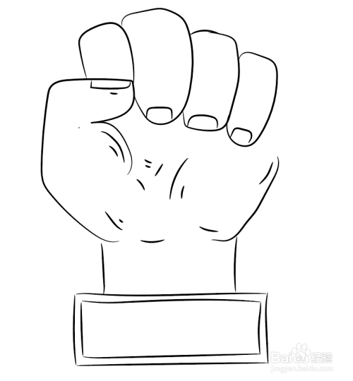 画一个长方形,空白处写文字,画一个大手的外轮廓