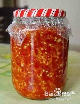 1一、自制蒜蓉辣椒酱材料:辣椒、蒜、盐、高度酒(注意,必须是高度的)、瓶子做法:1、将辣椒和蒜洗干净,晾干水!(一定要晾干!)菜刀和砧板也洗干净,晾干。 2、 辣椒和蒜的比例可根据个人的喜好。 然后将辣椒和蒜分别剁碎。 3、打碎到自己觉得满意的程度就行了。 4、 将打碎的蒜和辣椒拌一下,然后撒盐。 5、加高度酒。不用放太多,放多了辣椒酱的汁就比较多一点,适量放一点就可以了, 6、将辣椒酱拌匀就可以了!做的时候记得戴上一次性手套,不然手会被辣椒辣的很难受哦! 7、 最后,就装到瓶子里,封好!封存一个月就可以吃了!记住中途可别打开瓶子哦! 做好的辣椒酱,放在柜子里保存就行了,不用放冰箱。吃上一年都不会坏的!时间越长还会越香呢! 当然还有一个前提,每次取食辣椒酱的器具,也不能沾有水或者油,不然碰到水或油的辣椒酱会变质的。