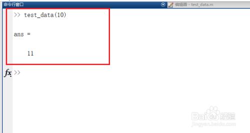 第五步保存好函数之后,我们可以来调用函数了,在命令行窗口中输入test_data(10),按回车键返回结果11,需要注意的是函数调用的时候,都在同一文件夹下,如下图所示: