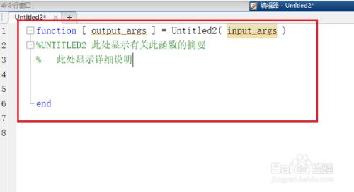 第二步默认创建了一个名为Untitled2函数,其中output_args是代表函数返回的结果,input_args代表函数输入的参数,如下图所示: