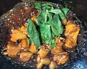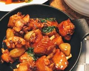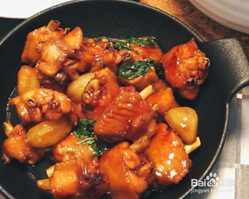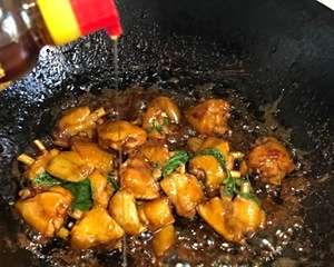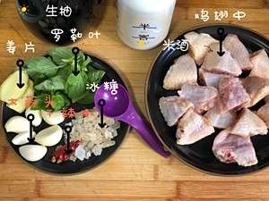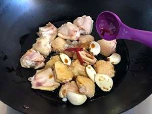 取炒菜锅把2勺冰糖、4勺酱油、8勺米酒,准备好的大蒜头和干辣椒还有焯过水的鸡翅都放进去,然后开火!大火煮沸转小火20分钟!