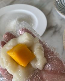 糯米粉,淀粉、牛奶、椰浆,糖搅拌成无颗粒的糊状。