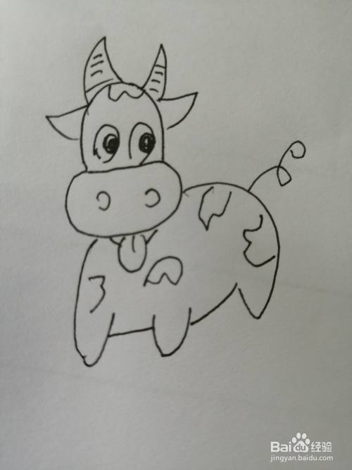 第七步,最后把可爱的小牛的小尾巴画完整,可爱的小牛就画好了。