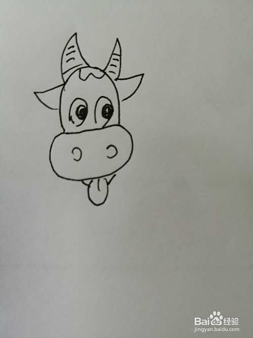 第四步,然后继续把可爱的小牛的小舌头画出来,注意小舌头细节的画法。