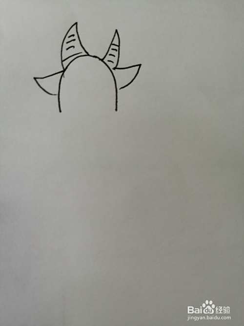 第二步,接着继续画出可爱的小牛的耳朵,注意耳朵的位置。