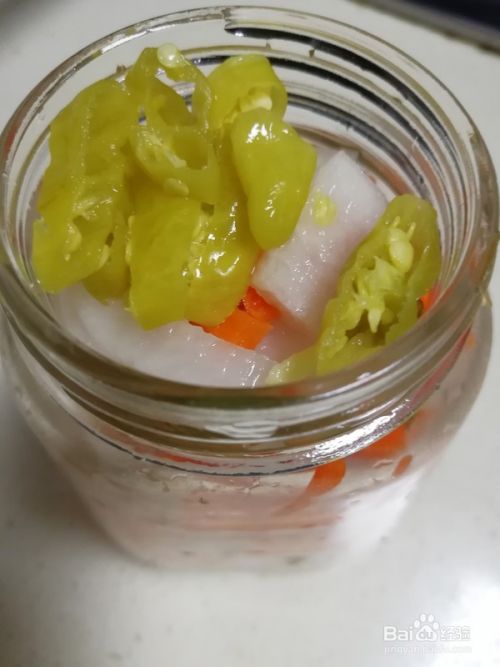 将切好的泡椒也装入玻璃瓶内,再到入10毫升泡椒水。