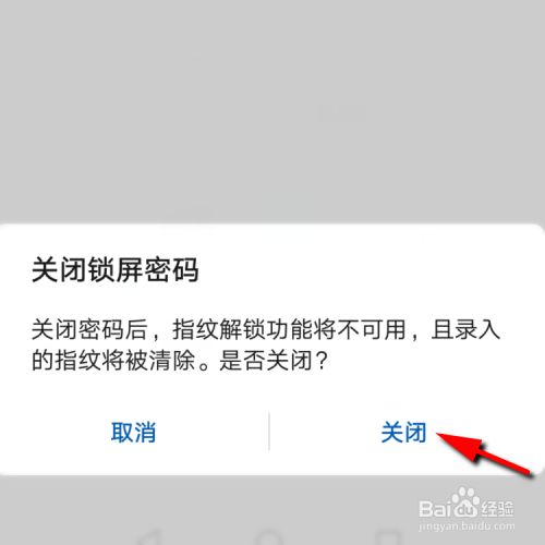 5最后会弹出一个对话框,点击【关闭】即可成功取消华为手机的锁屏