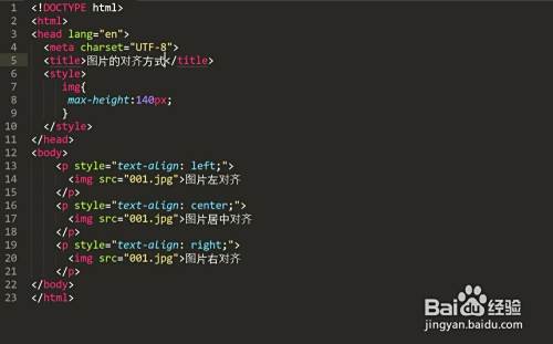 第三个,设置图片的对齐方式。由于图片本身没有对齐属性,可以继承父标签的text-align属性定义对齐方式。