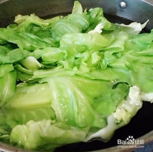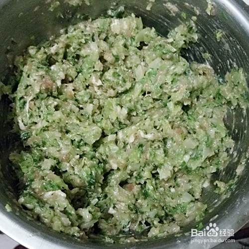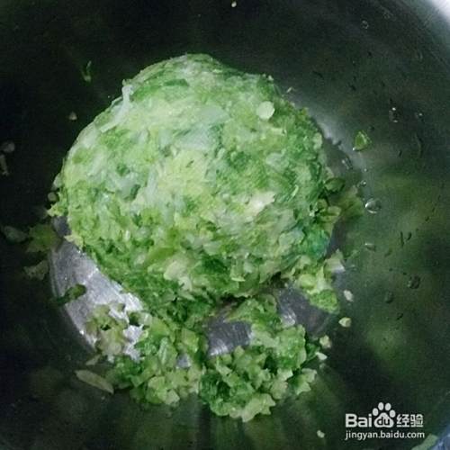 甘蓝洗净扒帮,锅中加水烧开,放入甘蓝焯一下,焯好放入凉水中,捞出切碎挤干水分备用。