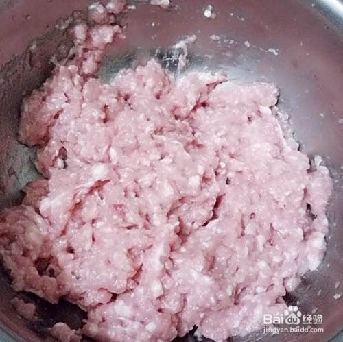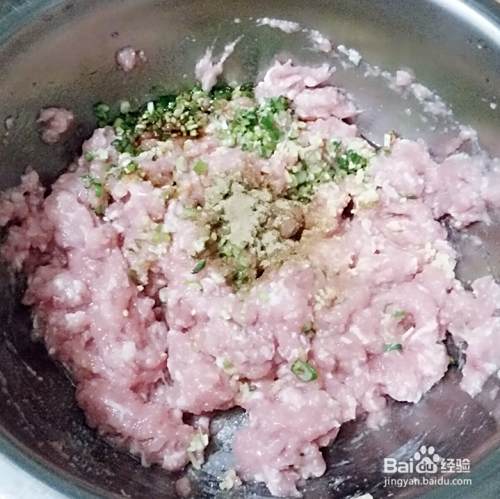 放入盐,酱油,味素,调馅料搅拌均匀,最后放入食用油拌匀,最后放入食用油是为了锁住肉馅里是水分。