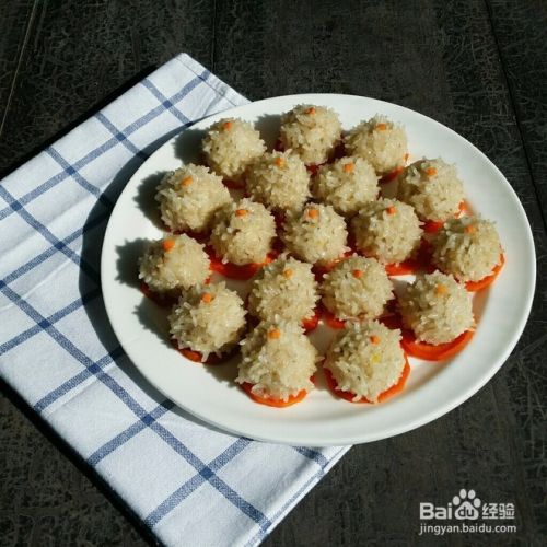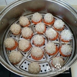 放在胡萝卜片上。剩余的肉馅按此步骤依次做好。水开后上蒸锅,中火,蒸25分钟。