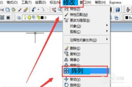 在cad中选择修改工具,然后会弹出一个下拉框,这里选择好矩阵就可以了。